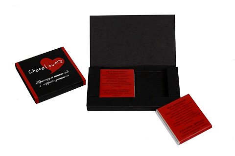 ChocoLovers - шоколад с афродизиаками для мужчин и женщин. В составе содержатся уникальные компоненты растительного происхождения- афродизиаки, которые стимулируют сексуальное возбуждение в организме человека и его половую активность, дают силы на удовлетворение сексуального влечения. В коробочке две плитки изумительно вкусного бельгийского шоколада, с которыми влюблённые испытают невероятное удовольствие и сексуальное возбуждение!