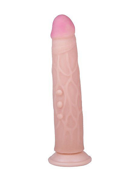 Фаллоимитатор на присоске с венами и точками на стволе - 22,7 см.