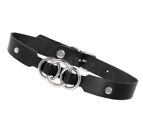 [NAME] => Черный кожаный ошейник со связанными кольцами