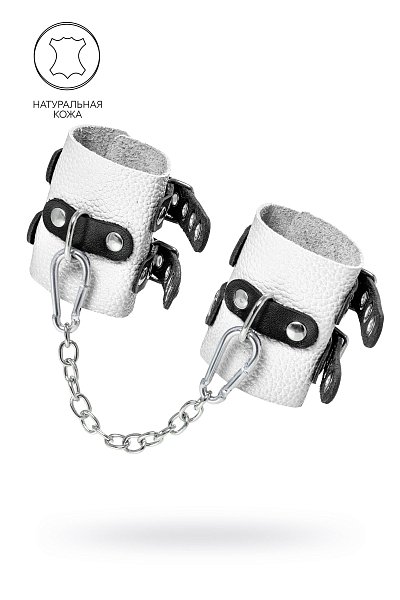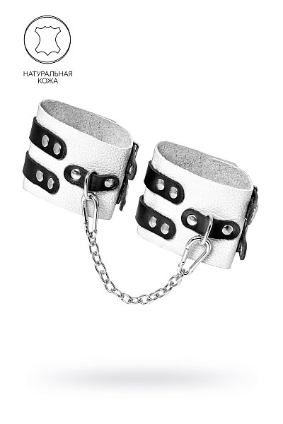[DETAIL_TEXT] => Основатели бренда уверены: лучший способ избавиться от искушения - поддаться ему! Мягкие, белые, кожаные наручники с двумя чёрными, жёсткими ремнями могут стать стильным аксессуаром, а могут послужить вашим целям по своему прямому назначению. Частичное обездвиживание и невозможность двигать руками дают вам полную власть над партнером – взрослые игры для взрослых. Наличие двух колец и карабинов, соединенных между собой металлической цепочкой, позволяет использовать изделие как раздельно – аксессуар-манжеты, так и как наручники для фиксации. К широким металлическим кольцам также можно присоединить и другие аксессуары при помощи карабинов. Благодаря универсальному размеру наручники могут использоваться и мужчинами, и женщинами.  Длина манжет - 18 см, ширина - 7 см.