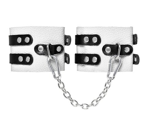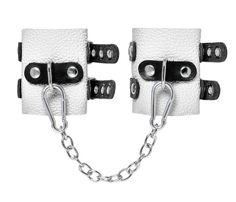[NAME] => Бело-черные наручники с двумя ремешками и люверсами