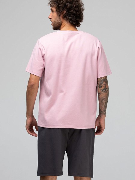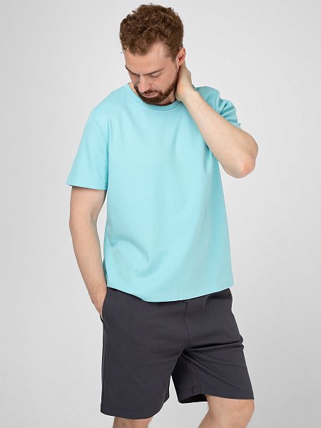 Мужской костюм для дома и отдыха: футболка и шорты. Выполнен из плотного хлопкового трикотажа в диагональный рубчик. Шорты до колена или чуть выше, свободного кроя, на резинке с кулиской и шнурком. Имеют удобные боковые карманы. Держат форму и не просвечивают. К серым шортам есть три варианта расцветки футболок: желтая, розовая, голубая. Оттенки спокойные, приглушенные, способствующие расслабленному времяпровождению. Футболка свободного прямого силуэта, с коротким рукавом и округлым вырезом горловины. Этот комплект удовлетворит самый взыскательный вкус и поможет создать стильный и комфортный образ для дома и отдыха.