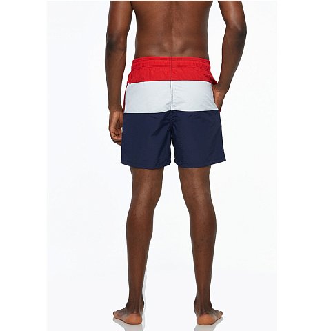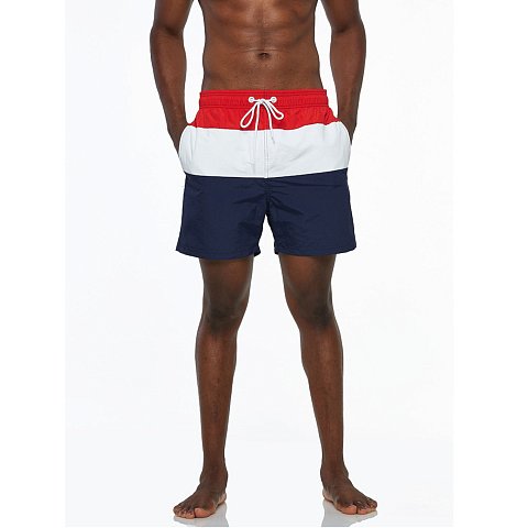 Трехцветные мужские шорты для пляжа. Быстросохнущая ткань. Подходят для пляжного отдыха и плаванья.
