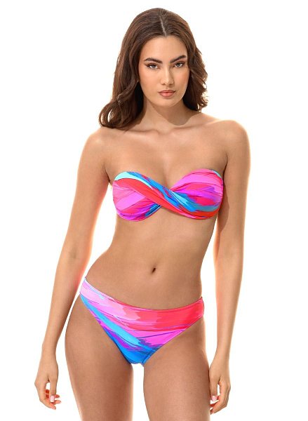 Раздельный купальник: бюстгальтер-бандо со съемными вкладышами и трусики-слип. Застежка - поворотный замок. В комплекте: лиф, трусики.