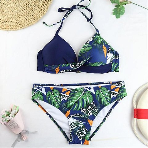 Раздельный купальник: бюстгальтер с формованной чашкой без пуш-ап на косточках. Нерегулируемые бретели с двойным вариантом завязывания. Застежка- завязка на спинке. Трусики-слип на завязках. В комплекте: лиф, плавки.