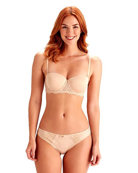 Бюстгальтер-балконет с пуш-ап с отстегивающимися бретелями и силиконовой лентой для поддержки без бретелей.