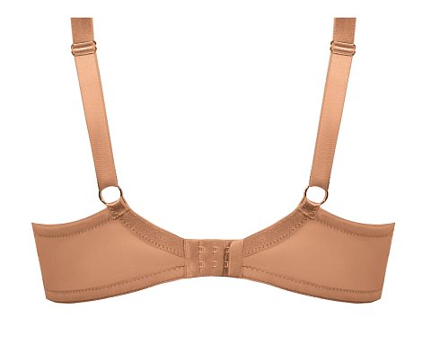 Бюстгальтер Elisabeth M выполнен на косточках, чашки мягкие, шитые из сетки телесного цвета, нижняя часть покрыта сеткой с вышивкой нитью в тон. Бретельки пришиты, регулируются по длине. На спине застёжка на удлинитель, фурнитура цвета золота.