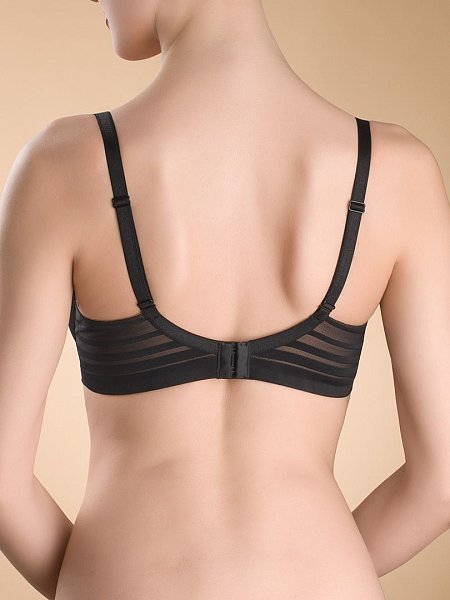Бюстгальтер с мягкой чашкой, с тройным диагональным членением, на каркасах. Боковые детали стана на подкладке. Завершающий элемент композиции - металлическая подвеска в виде буквы С.