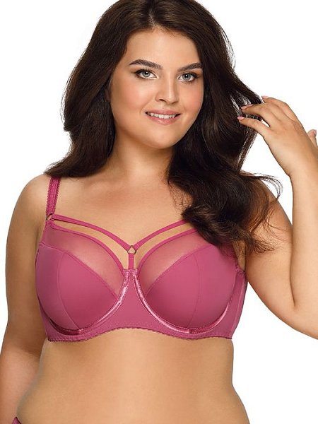 Бюстгальтер на косточках, с боковыми поддержками, чашки шитые, нижняя часть на тонком поролоне, внутренняя сторона прошита хлопковым трикотажем, внешняя гладкая, верхняя часть из тонкой сетки с вышивкой. Бретельки не отстёгиваются, регулируются, на спине.