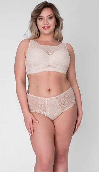 Бюстгальтер-топ выполнен с мягкими чашечками без косточек, чашки шитые из кружевного полотна, продублированы эластичной тканью в тон, под грудью пришита широкая эластичная резинка, спинка из стабилизирующей сетки, Бретельки регулируются по длине, не отстёгиваются, с подвижной фурнитурой-крючком для соединения бретелей на спине. На спине застёжка на удлинитель на 2 и 3 крюка. У данной модели довольно тугой пояс. Рекомендуем использовать удлинитель пояса бюстгальтера на первое время либо выбирать следующий за «своим» размер, с поясом длиннее.