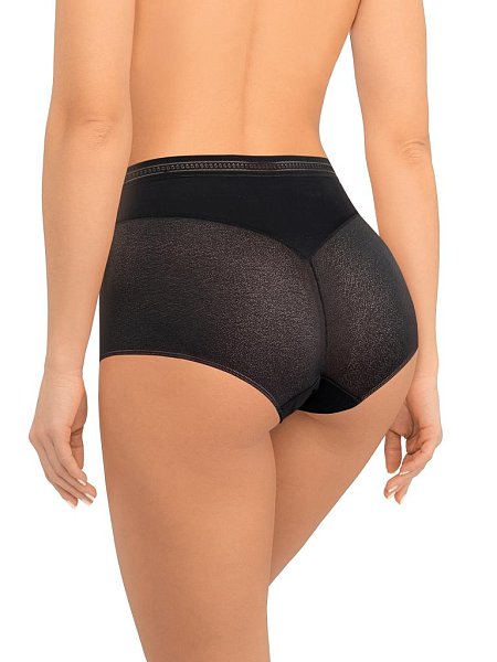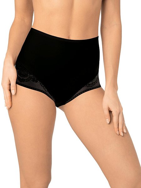 Трусы-бразилиана с высокой линией талии. Передняя деталь дублирована эластичной сеткой, легкий моделирующий эффект, скрытая резинка по ножке и талии. Высота бочка 12 см. Выполнены из микрофибры и сетки.